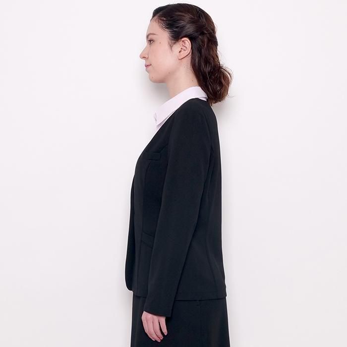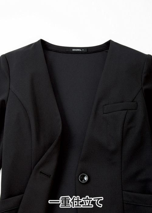 動きやすく、未来を考えた環境に優しい素材、ボンマックス、【エコツイルニット】のノーカラージャケットです。