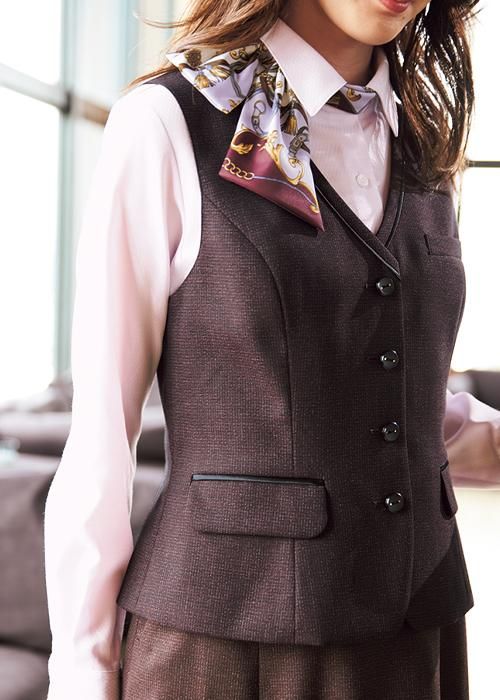 ボルドーは肌なじみがよく、表情を明るくやさしく見せるので、知的に見えつつも親しみやすい、頼れるお姉さんを演出。
