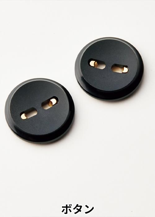 艶のある黒のサテンがラペルやポケットにあしらわれてアクセントに。