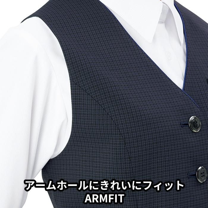 銀のチカラで抗菌・防臭素材を使用した、細かなシャドーチェックが清潔感と親しみやすさを醸し出すベストです。