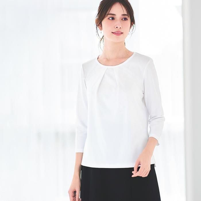 ニットならではの伸縮性の良さで動きやすく、締め付け感のない着心地は働く女性の強い味方です。