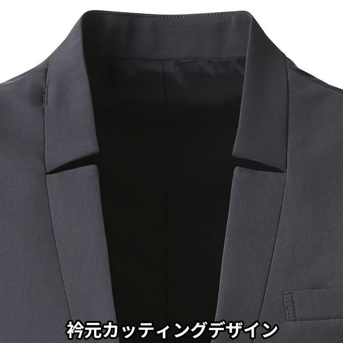 ラペルに入れた切込みが首元のツッパリ感を解消しつつ、シャープに見えるデザイン。