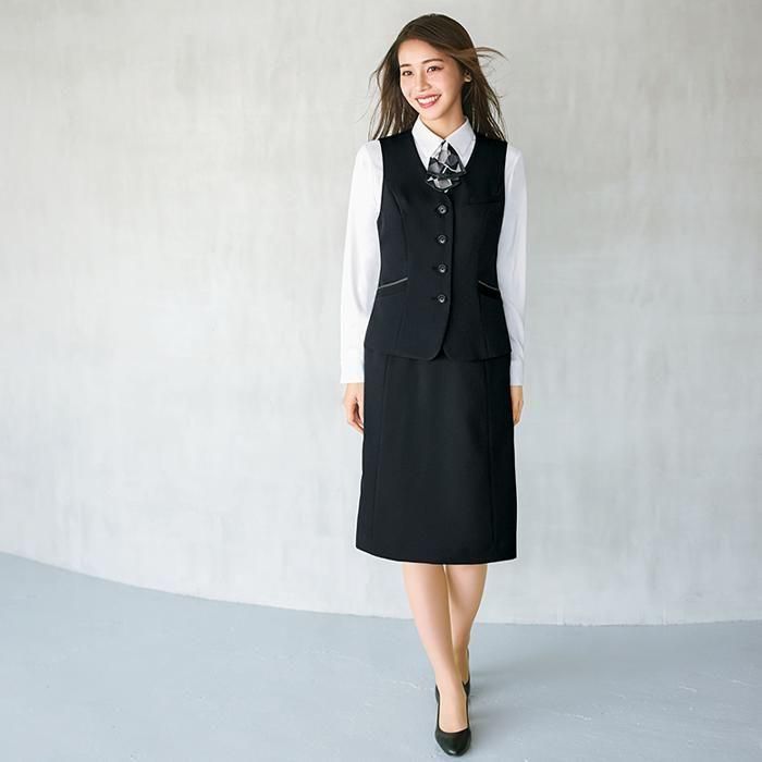タイトスカートでも、ゆとりをもたせた動きやすいシルエットです。