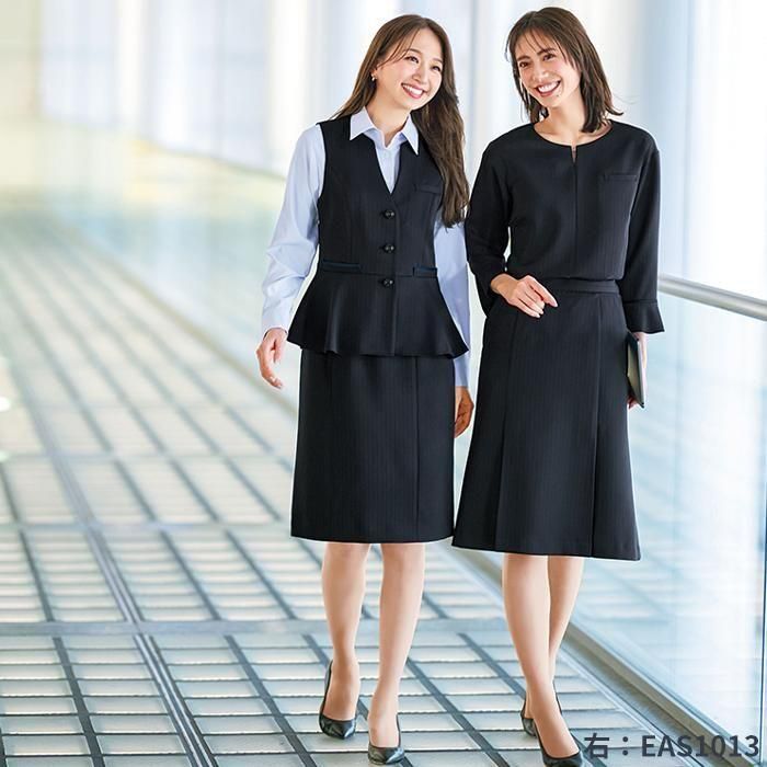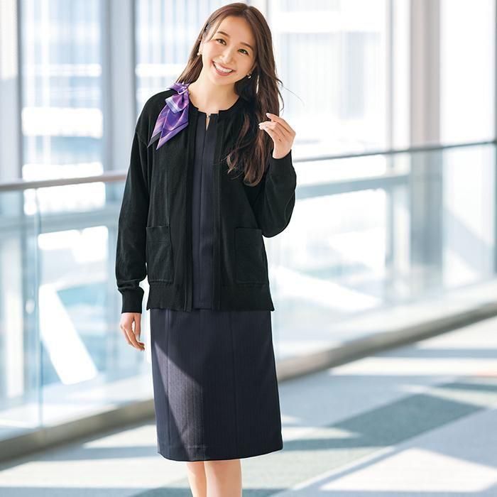 すっきりと縦ラインを強調するタイトシルエットは、オフィスウェアの定番スタイルです。