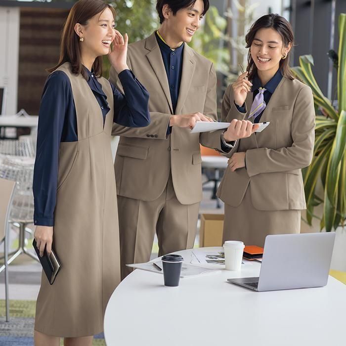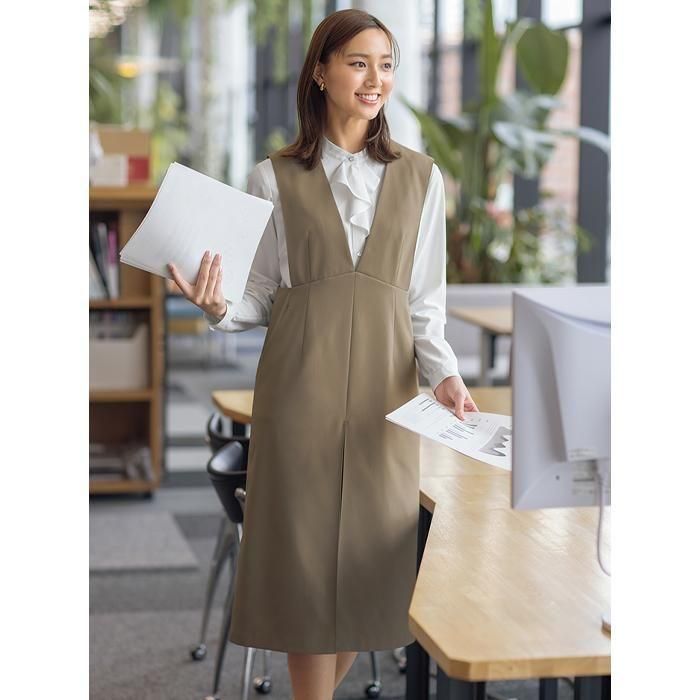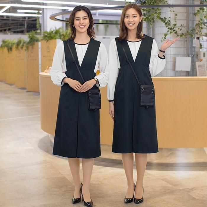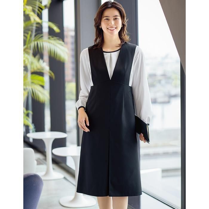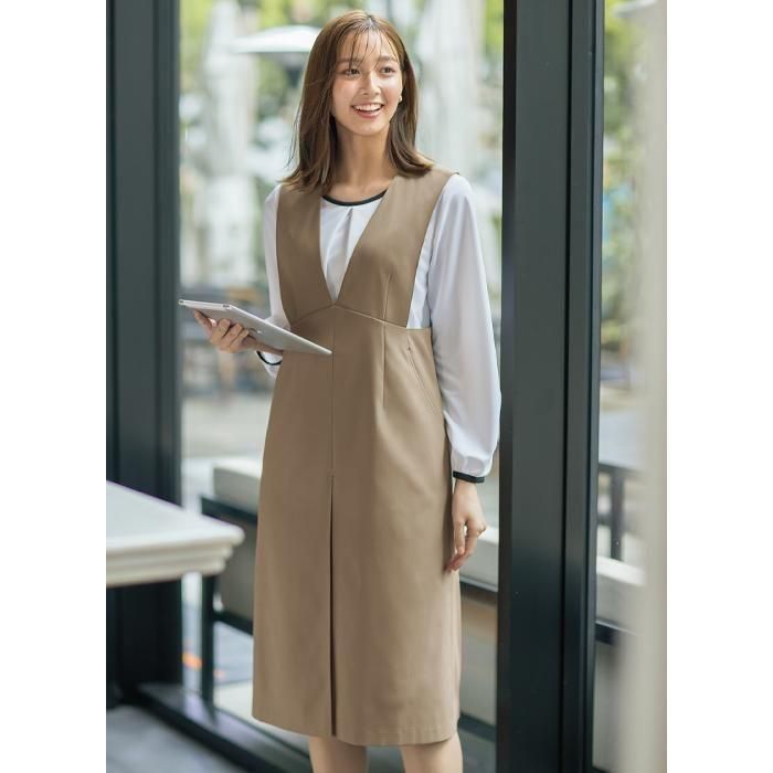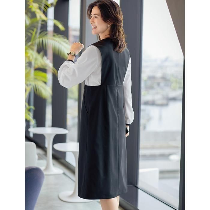 ビジネスカラーとシンプルシルエットで男女問わずアイテムが揃うSelery・ニュアスシリーズの ストレッチ・ライトフィックスのジャンバースカートです。