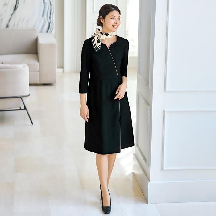 黒が魅せる、クールとジェントルのエレガンス。MARY QUANTのニット地カシュクールワンピースです。