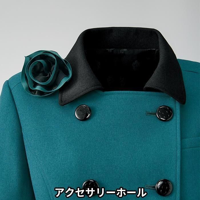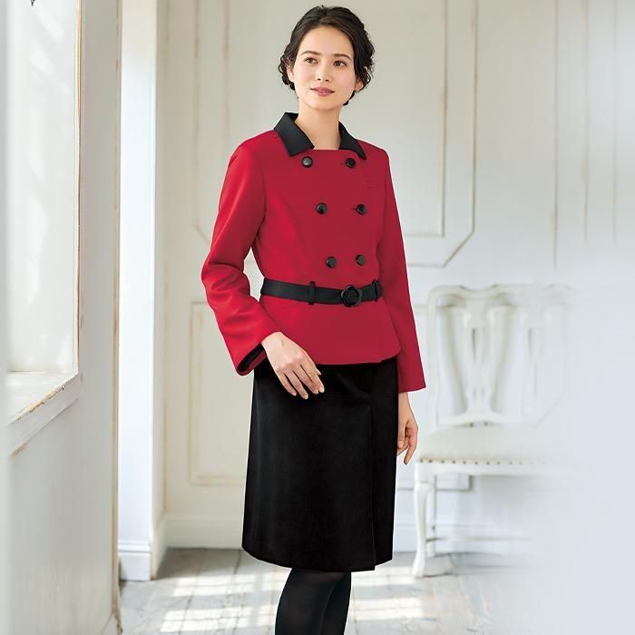 バッキンガム宮殿の衛兵を思い起すダブルボタンに、ブラックベルトを配しました。