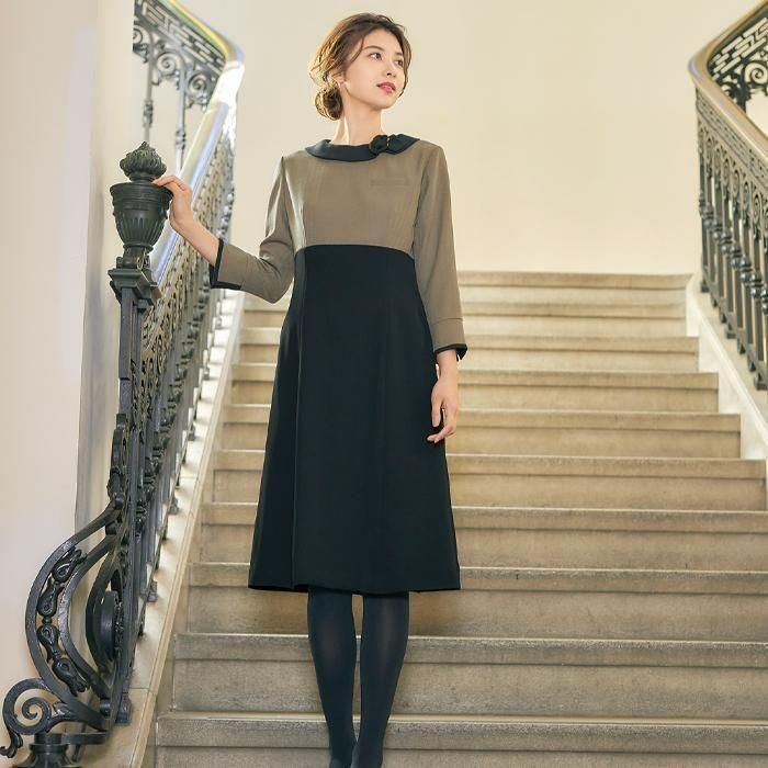 伝統色で魅せる、品格のアイデンティティー。MARY QUANTのデイジーバックル付衿の切替ワンピースです。